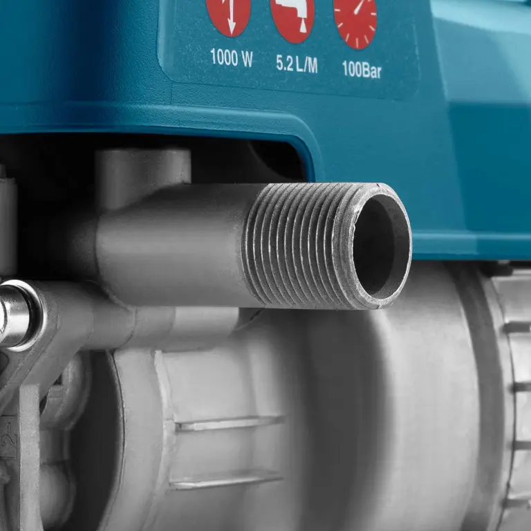 Ronix RP-0101C compact high-pressure washer is equipped with a powerful 1000W induction motor that, by connecting to a 220-240V and 50-60Hz power outlet, assures the user that the process of washing, cleaning, and peeling will continue with high power without reducing or stopping the water flow.