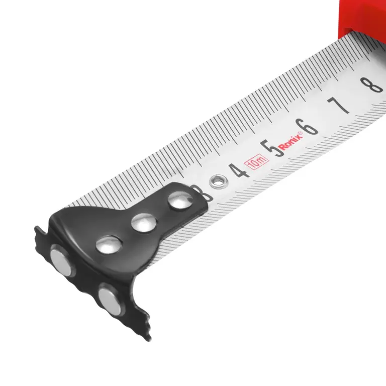 The RH-9016 is an exquisitely designed, easy-to-carry tool with a blade 25mm wide and 10m long. Its ruler shell is made of brand-new ABS and TPR that make it an anti-fall and safe tool. The tape is also manufactured from carbon steel. It is equipped with an innerspring that provides a lasting constant force. The tape surface has a white single metric printing and has been under a sub-gloss wear-resistant surface treatment that provides a clear and easy reading. Working with it has become much easier with the strong magnetic ruler hook that can be perfectly absorbed on iron objects.